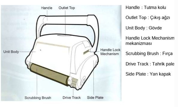 Uzaktan kumandaya,taşıma arabasına,dahili timer,filtre doluluk ikaz ışığı,PVA fırça ( 1 adet pompa ve 1 adet sürüş motoru) sahiptir.